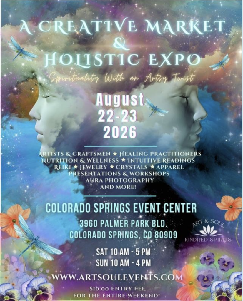 August 22 & 23, Holistic Expo, Saturday 10am to 5pm, Sunday 10am to 4pm Colorado Springs Event Center 3960 Palmer Park Blvd, Colorado Springs, CO, 80909. Free Parking